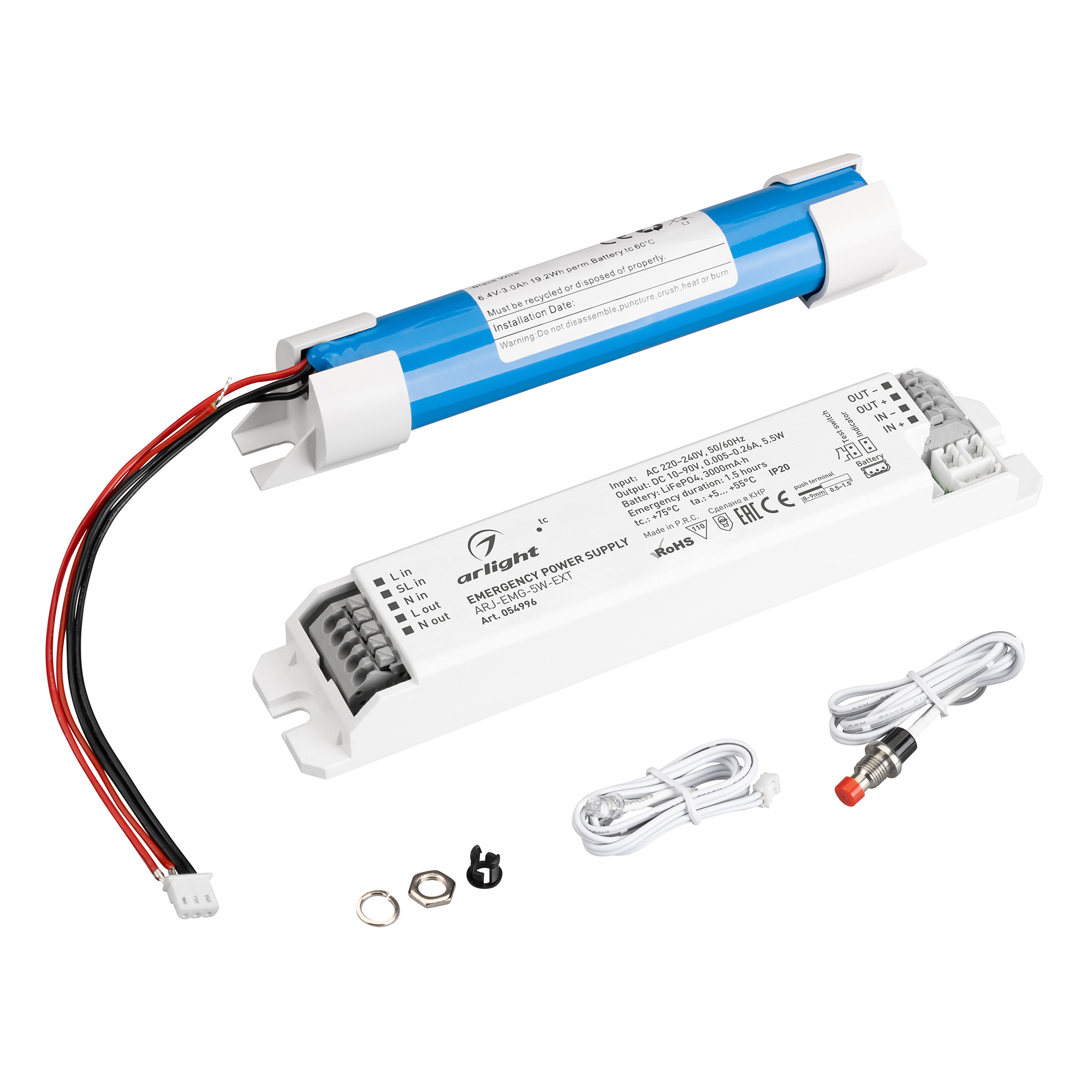 Блок аварийного питания ARJ-EMG-5W-EXT (10-90V, 1.5H, LiFePO4) (Arlight, IP20 Пластик, 3 года) 054996 в Кирове