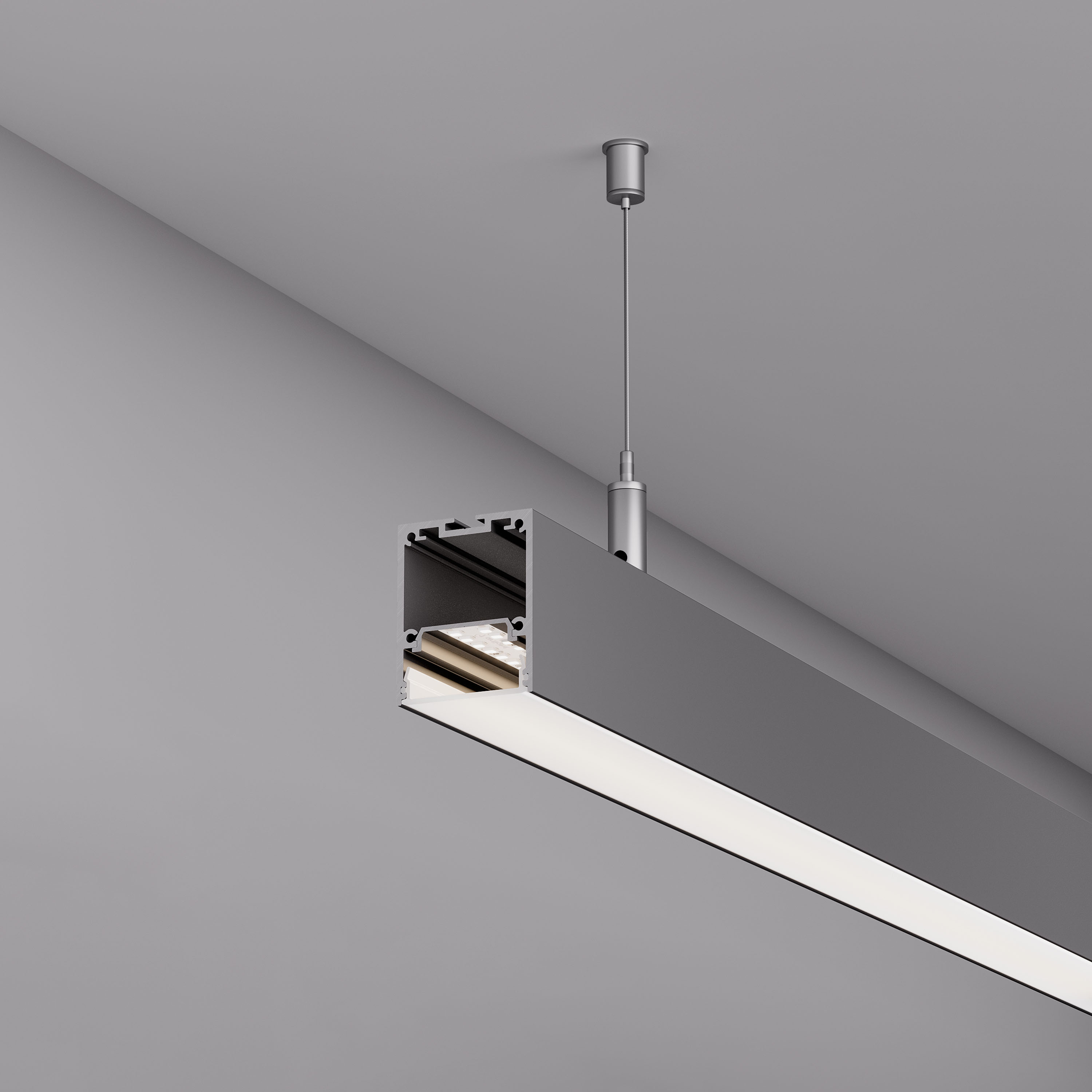 Накладной/подвесной профиль из анодированного алюминия серебристого цвета для основного освещения с возможностью герметизации до IP54 с помощью аксессуаров к профилю без дополнительного использования силиконового герметика, до IP65 с помощью аксессуаров к профилю при условии дополнительного использования силиконового герметика. Габаритные размеры профиля составляют 2000 мм в длину, 40 мм в ширину и 50 мм в высоту. Площадка для установки светодиодных лент позволяет использовать ленту шириной до 24 мм и мощностью до 36 Вт/м. Это обеспечивает гибкость в выборе светодиодных лент и позволяет создать потрясающие световые решения. Экран, заглушки и другие аксессуары не включены в комплект и приобретаются отдельно. Цена указана за 1 метр профиля. Отличное решение для создания современных световых проектов.