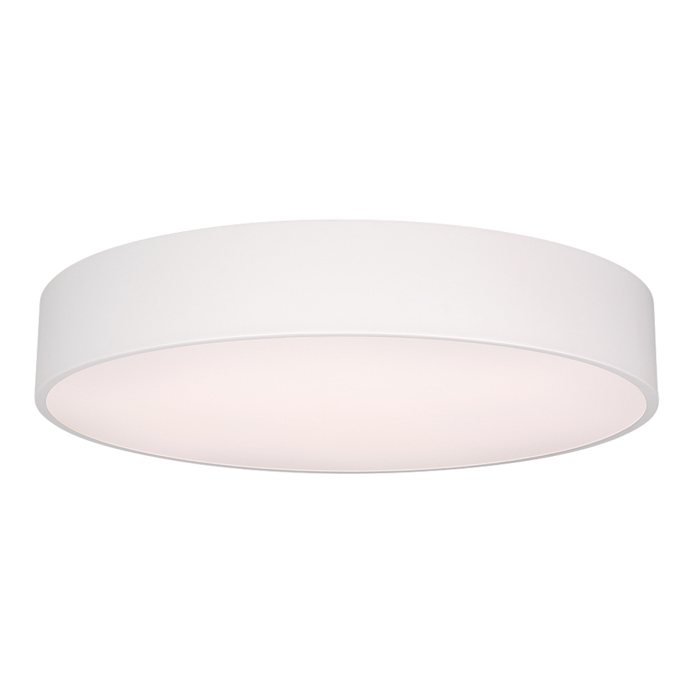 Накладной интерьерный светильник. Мощность 50 Вт, св. поток 4050 лм, 80 лм/Вт, дневной 4000 K, CRI>80, угол 100°, напряжение питания 230 В. Белый круглый корпус из алюминия, степень защиты IP20. Призматический акриловый рассеиватель. Размер: диаметр 600 мм, высота 100 мм. Монтаж накладной. Драйвер 28-42 В, 1200 мА, пульсация <2%.